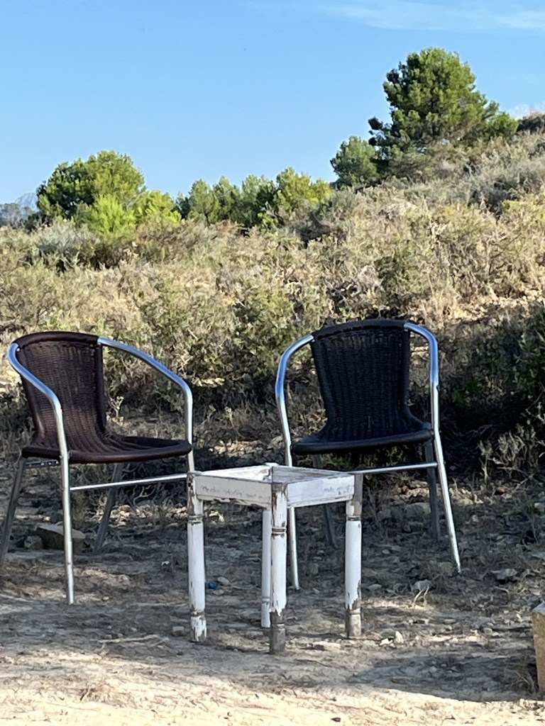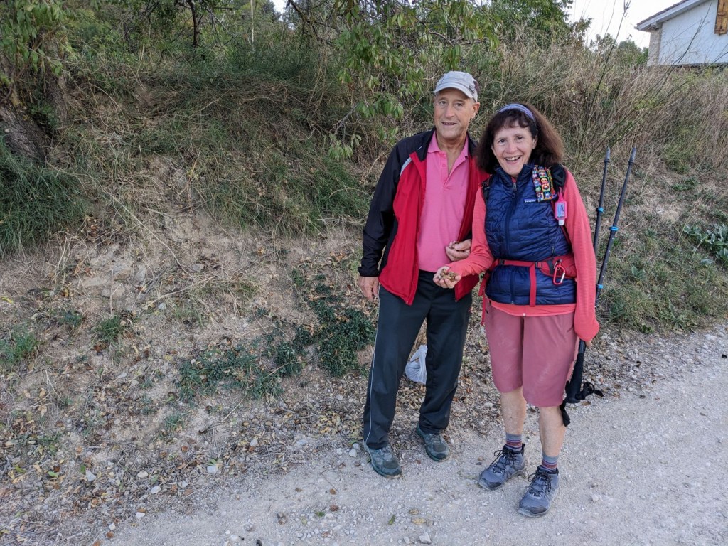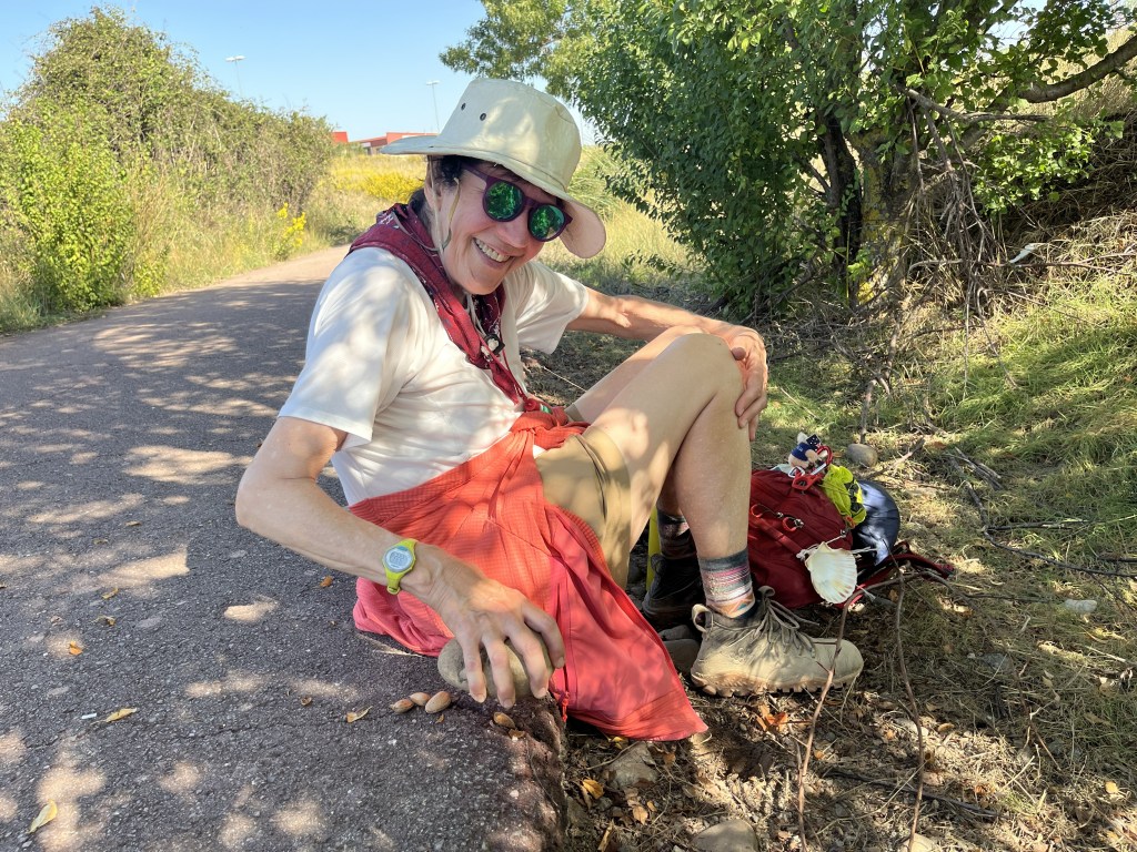 With 2.5 miles to go we took a short break and enjoyed a few almonds. Along the route there are many almond trees. A few days ago a man gave us a few that he had found on the ground. It was time to crack some nuts.