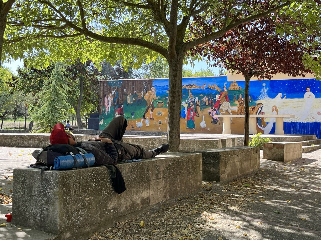 Interesting mural at a lovely picnic spot where a few pilgrims were resting before the final push into Logroño.