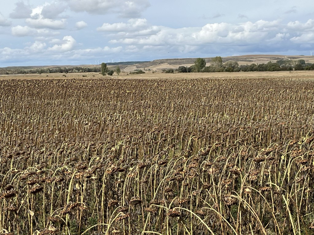 The trail started out with the same countryside we have enjoyed for many days. Open landscape with rolling hills and freshly plowed land.