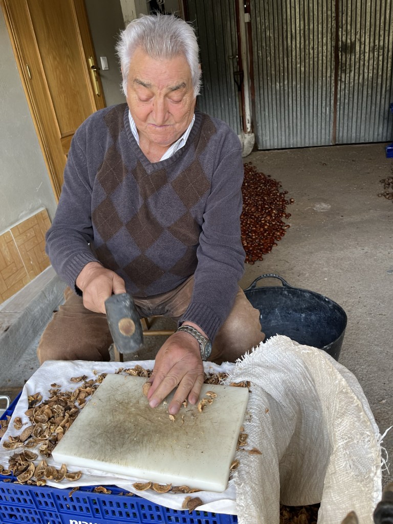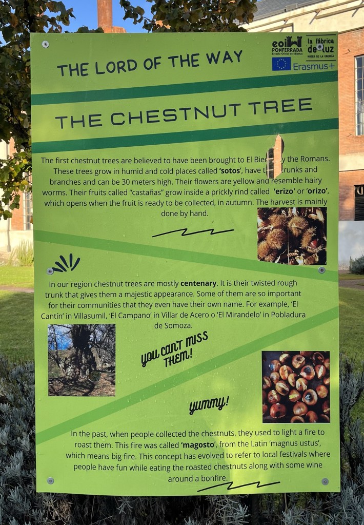 Most of the day we hiked under chestnut trees. The ground was littered with chestnuts ready to be gathered & roasted for the Christmas holidays.