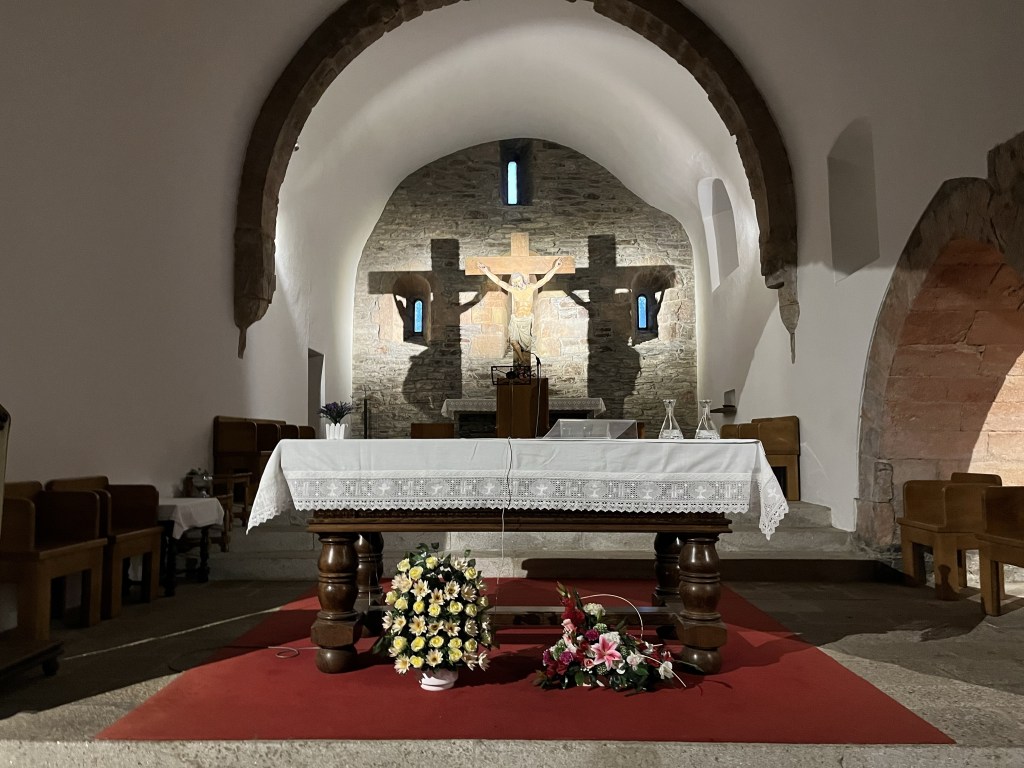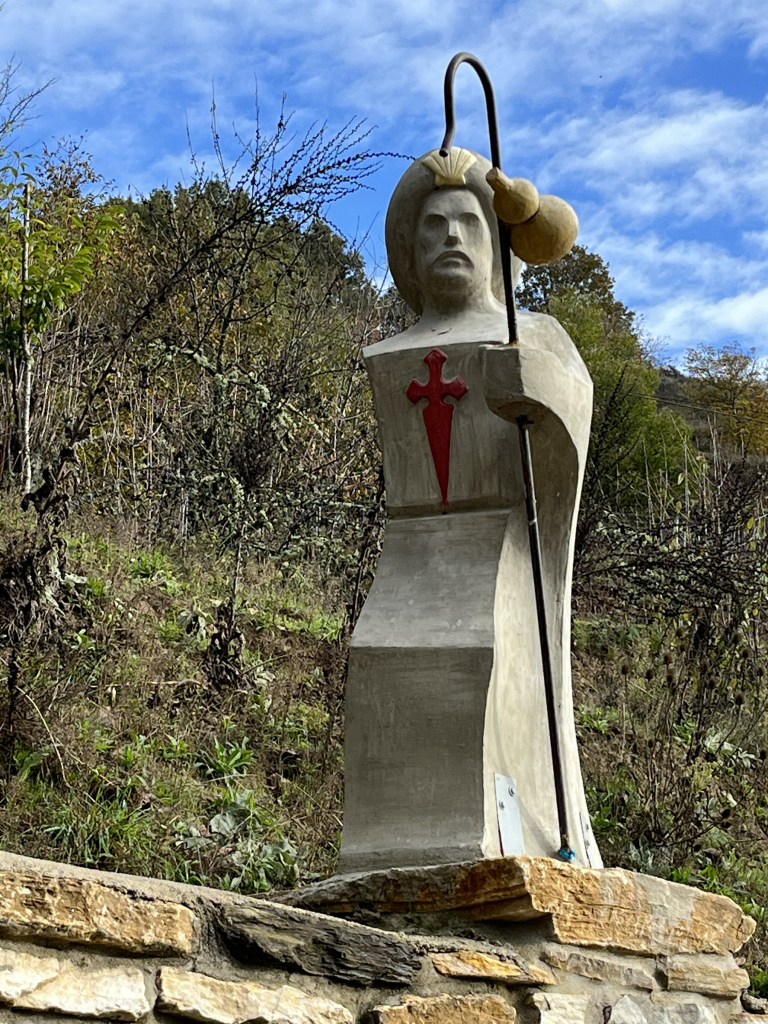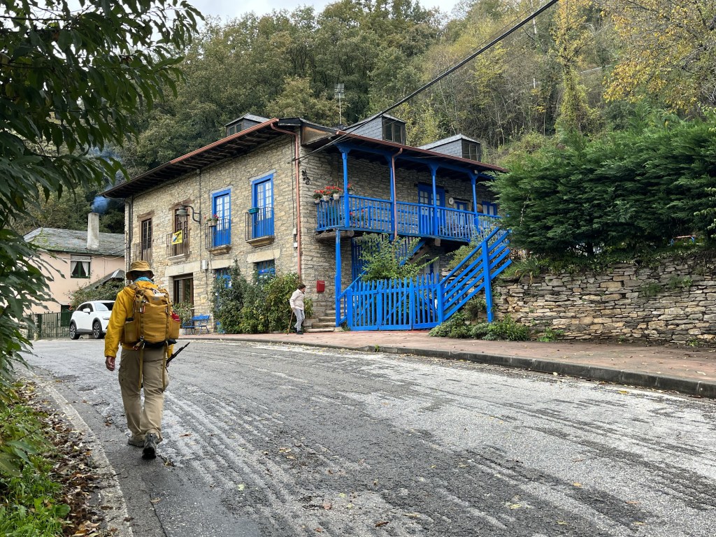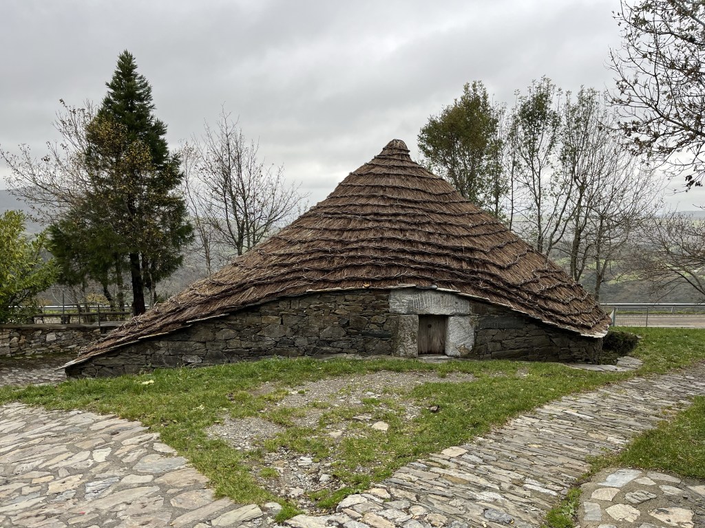 Most of the day we hiked through a narrow valley above the Rio Valcárce. Then the last few hours was a steep climb up to O Cebreiro. Thankfully we arrived at 4:00 just before the rain started.