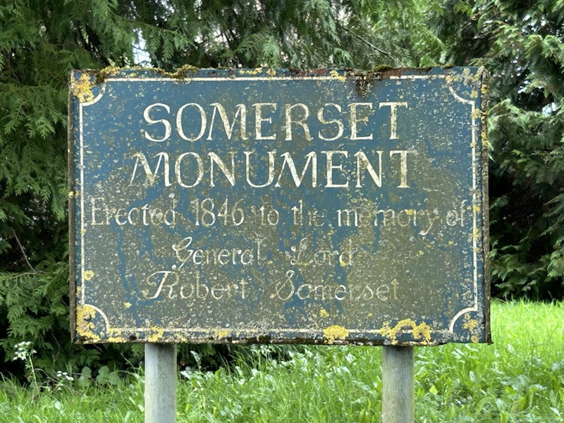 This monument commemorates General Lord Robert Somerset who fought Napoleon’s French army in Spain & also at Waterloo. He later represented this area in Parliament. This monument is located near his family’s home in Hawkesbury, Gloucestershire.