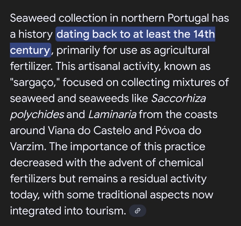 One thing we found very interesting was seaweed being harvested along the coast. Seems this process has been going on for centuries here.