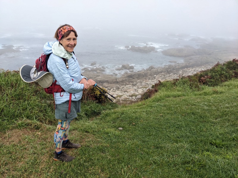Our route today covered 11 miles. Now that my body has adjusted & adapted to the new routine, it was nice to be walking a long distance again. Even though we often could not see the ocean due to the fog, we always heard its roar from waves hitting the rocky shore on our left side as we continued north.