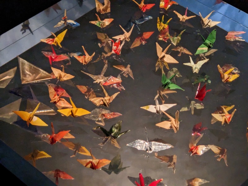 While in the hospital, Sadako folded more than 1,000 cranes. The museum has some displayed which are about the size of an American quarter. She even folded some cranes from paper that were the size of a single grain of rice.