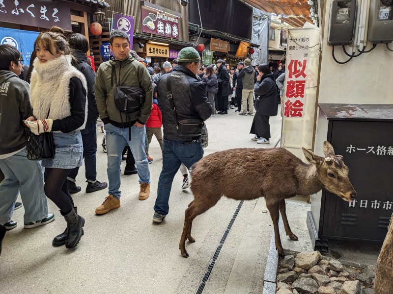 Miyajima Island also contains many shops along with wild deer who roam freely looking for food from tourists. The main food attraction was the popular Hiroshima oysters.