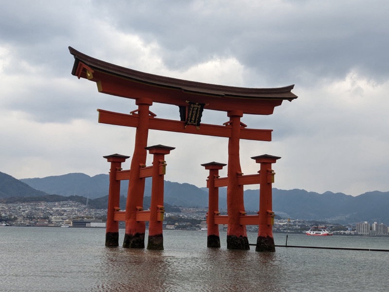 This shrine & its torii gate originally built in 593 are not only a Japanese national treasure; but also, a UNESCO World Heritage site.