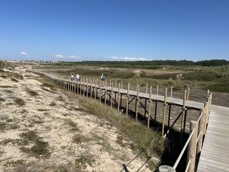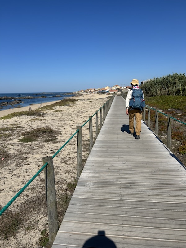 We had 2 routes to choose to go from Viana to Âncora. We chose the one closest to the ocean which was next to perfect. Not only was the view spectacular; but also, we enjoyed a flat path on boardwalks, sidewalks, & packed sand. My feet were saying “thank you” the whole way. (Not a big fan of the cobblestones. 😜)