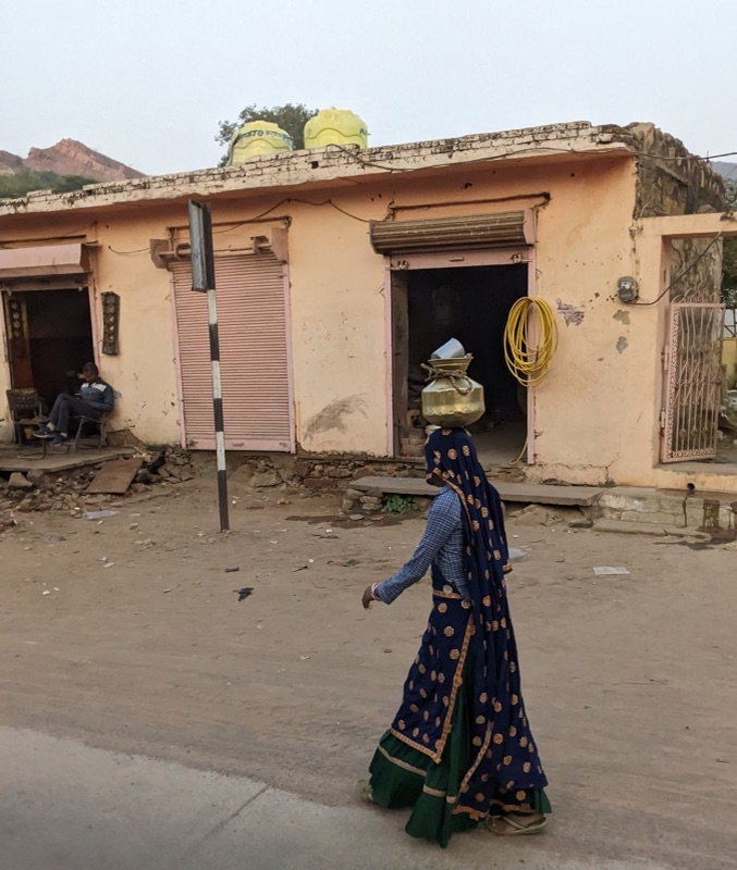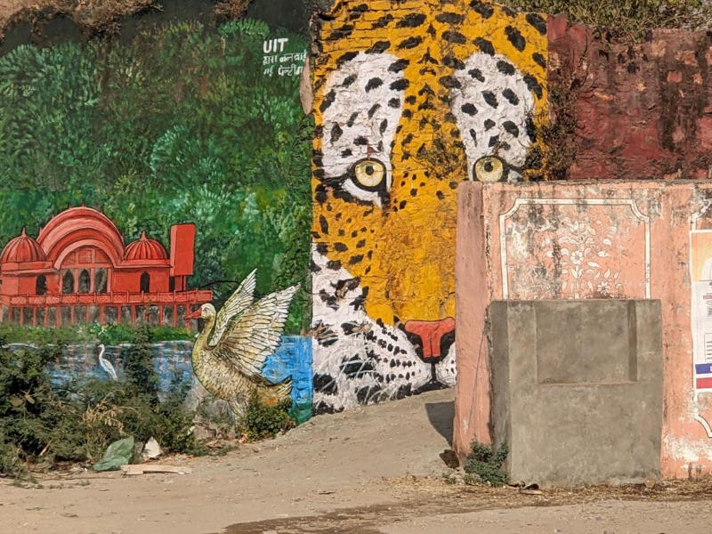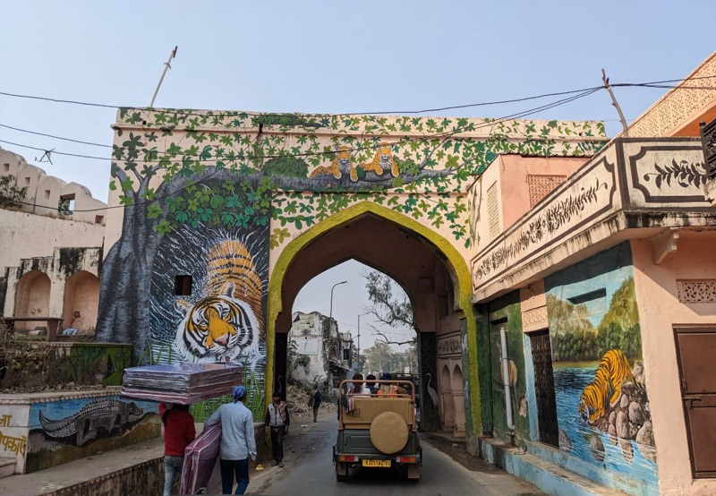 Sometimes we drove through the town of Sawai Madhopur. Walls are decorated with tigers & the people are always interesting to watch in their daily life.