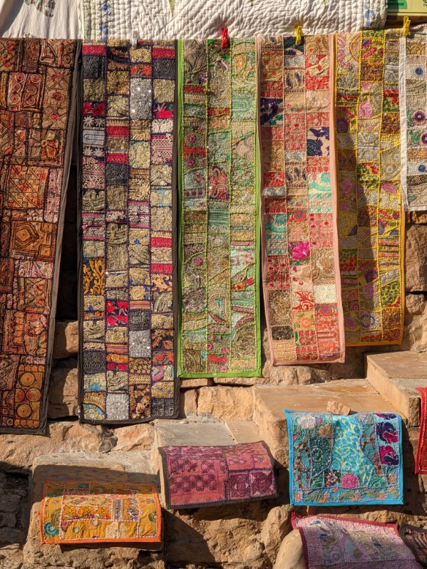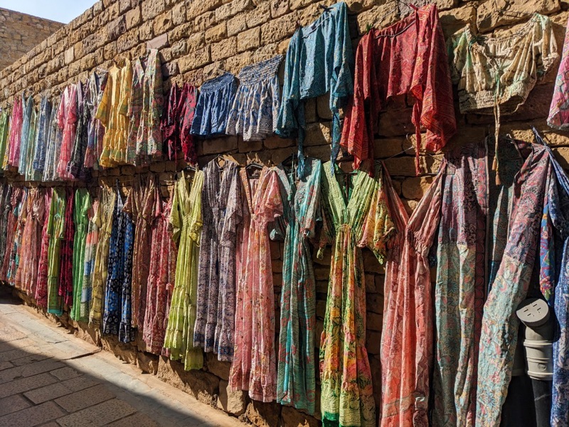 The fort has many shops selling various trinkets . Plus, many hawkers simply drape the walls with clothing & textiles to display their wares.