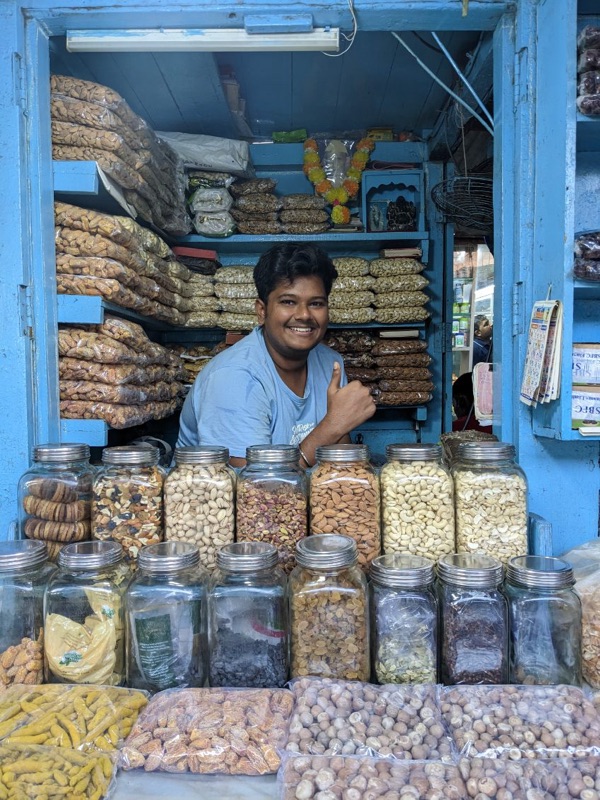 In walking through the market our guide showed us a no-kill mouse trap. It is not considered appropriate to kill a mouse because Ganesh who is the Hindu god of Wisdom, Luck, & New Beginnings uses a mouse as his vehicle & is considered as a symbol for him to overcome obstacles.