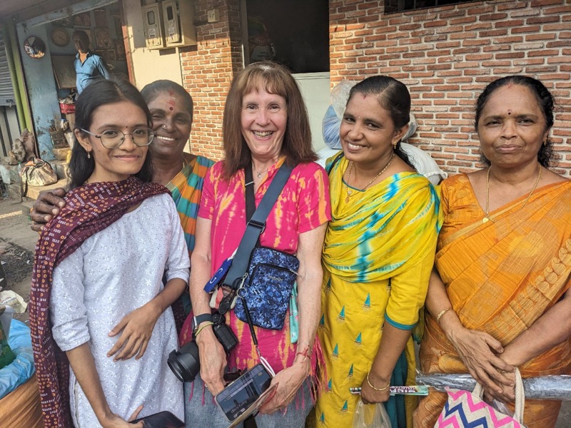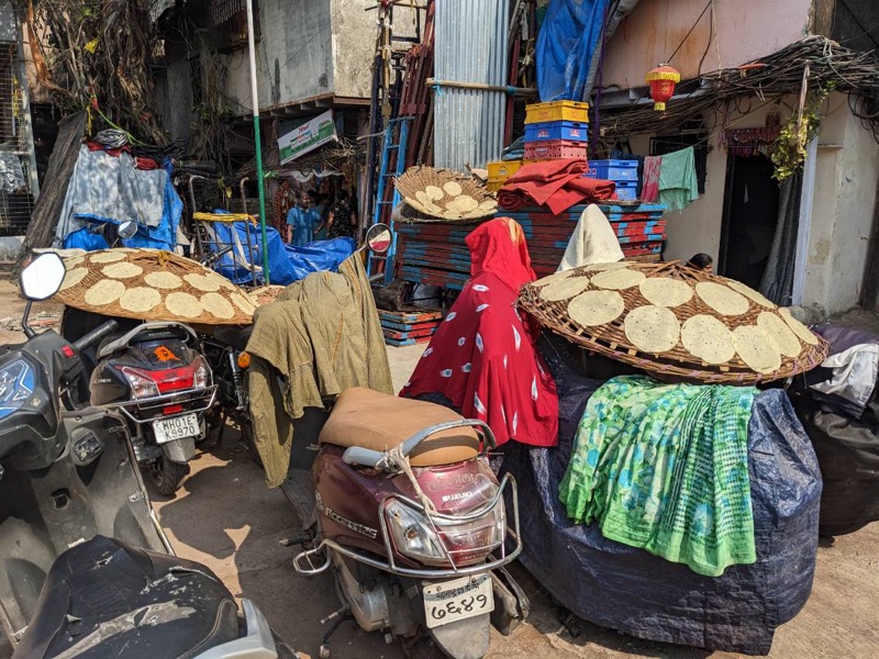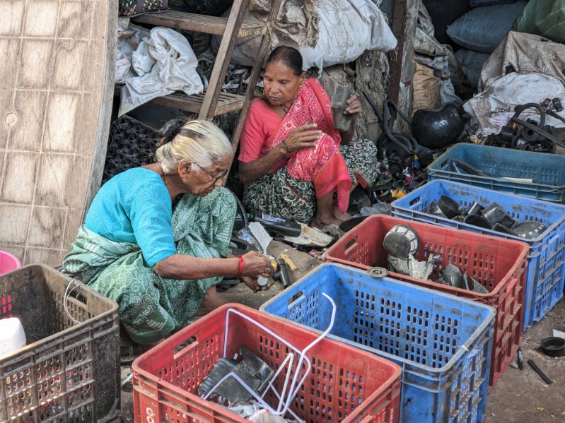 Pottery makerDough is rolled out to dry then sold to stores so they can make PoppadomTextile business Sorting between heavy & light plasticSorting plastic by colorHard to believe people live & work here; but, thankfully schools are nearby & we didn’t see any children working in the shops. Two young girls on their way home from school wanted to see their picture in my camera. Cute 🥰