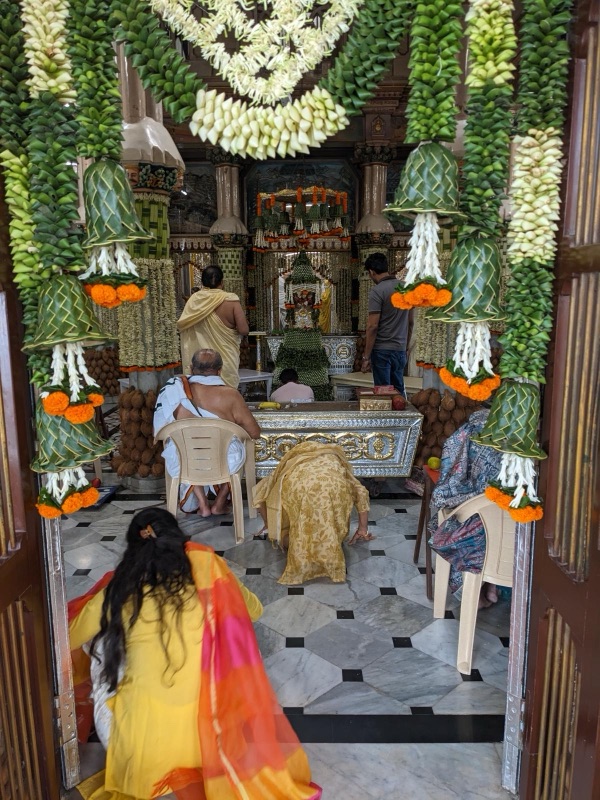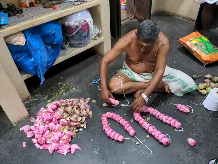 While visting, we had a chance also to see the family preparing for the festival & learned how they made ground sandalwood to make a paste that is painted on the body.