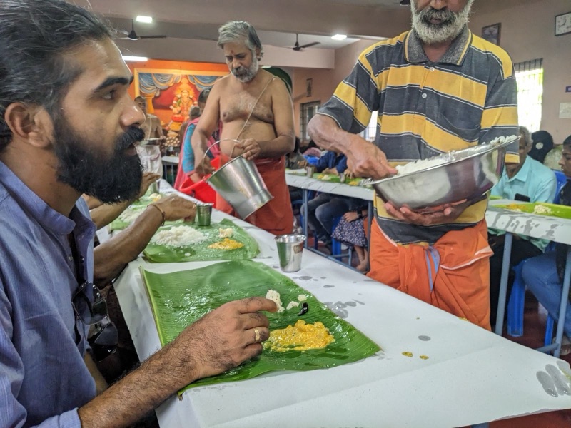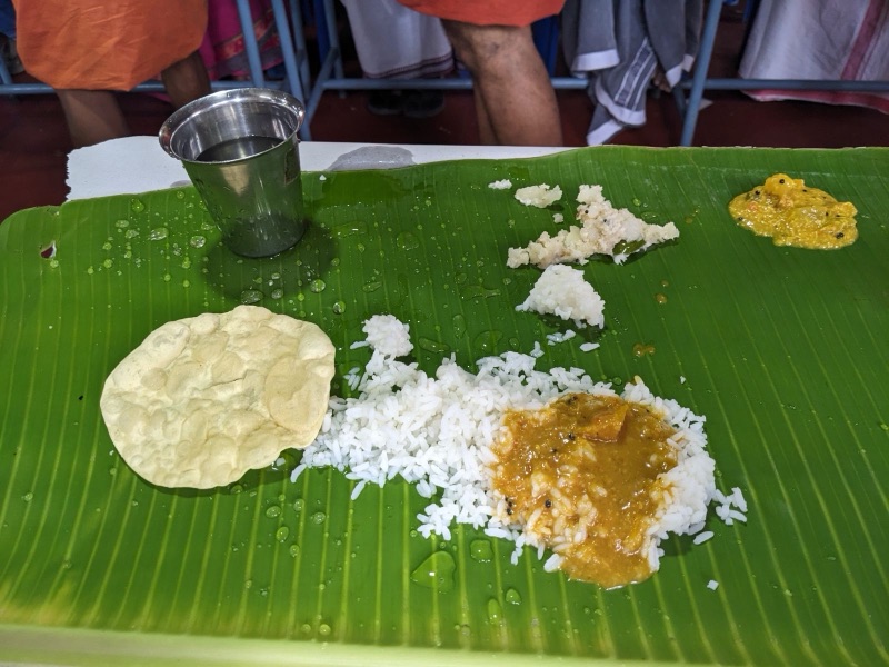 All the food was served on a giant banana leaf & eaten by hand. Unfortunately, we chose not to eat the food because we were afraid we might have tummy problems later; but, our guide said it was very tasty. In any case, it was nice to be invited.