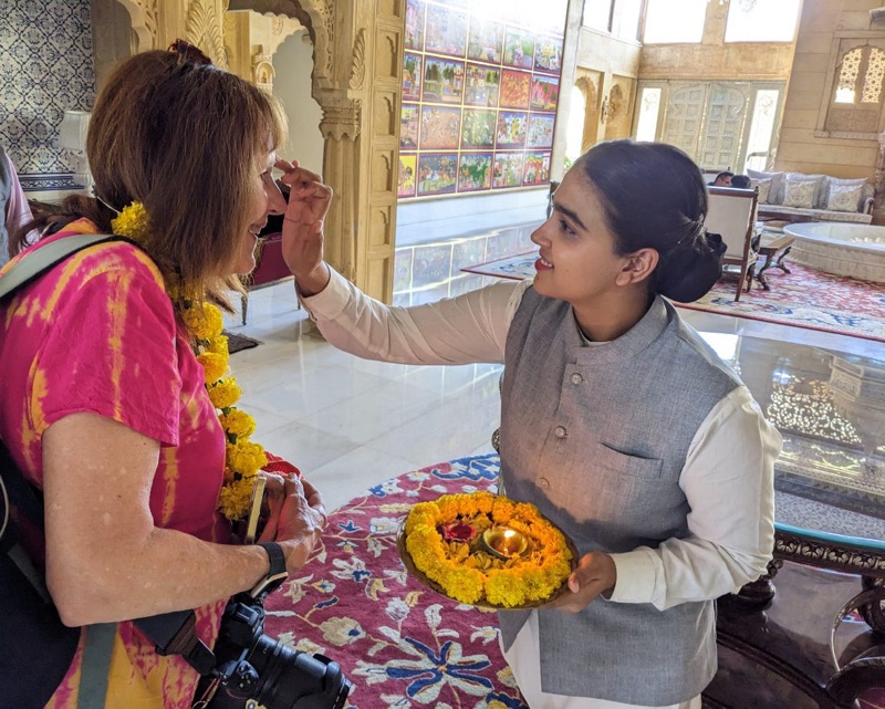 Receiving a “Tilak” dot for good fortune LobbyCourtyardEvening Dancing