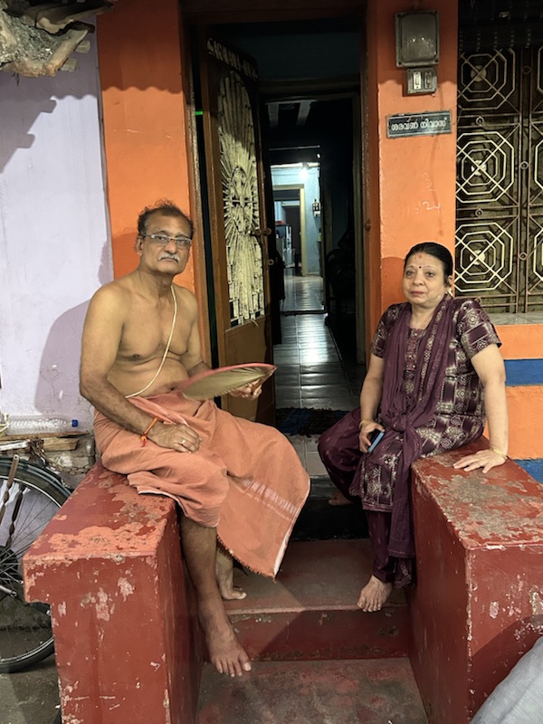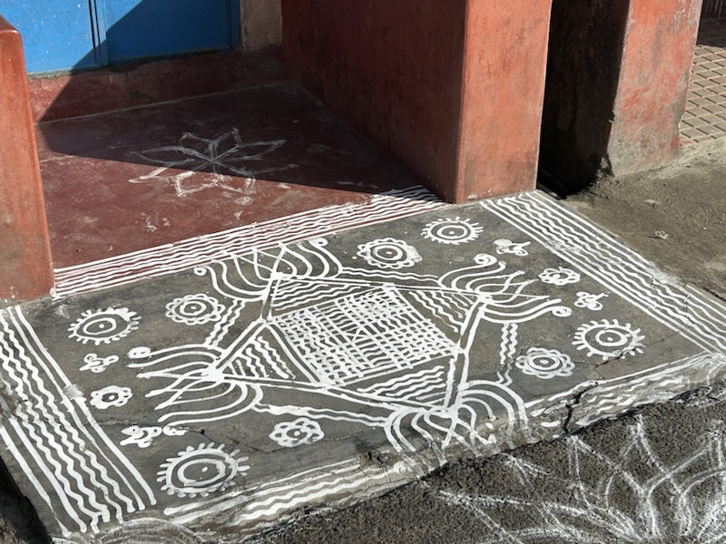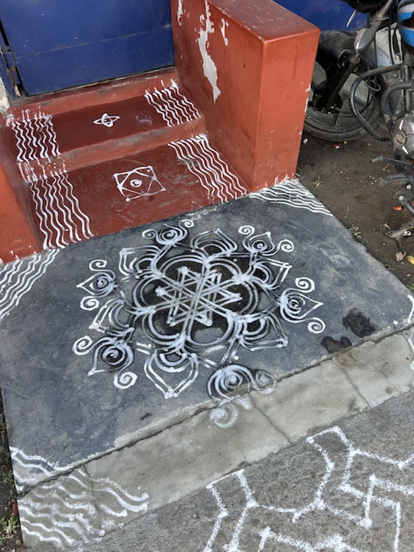 We spent three days in Kalapathy, India. One morning we got up extra early to watch the women do their daily front door entrance decoration with intricate designs called a Kolam.