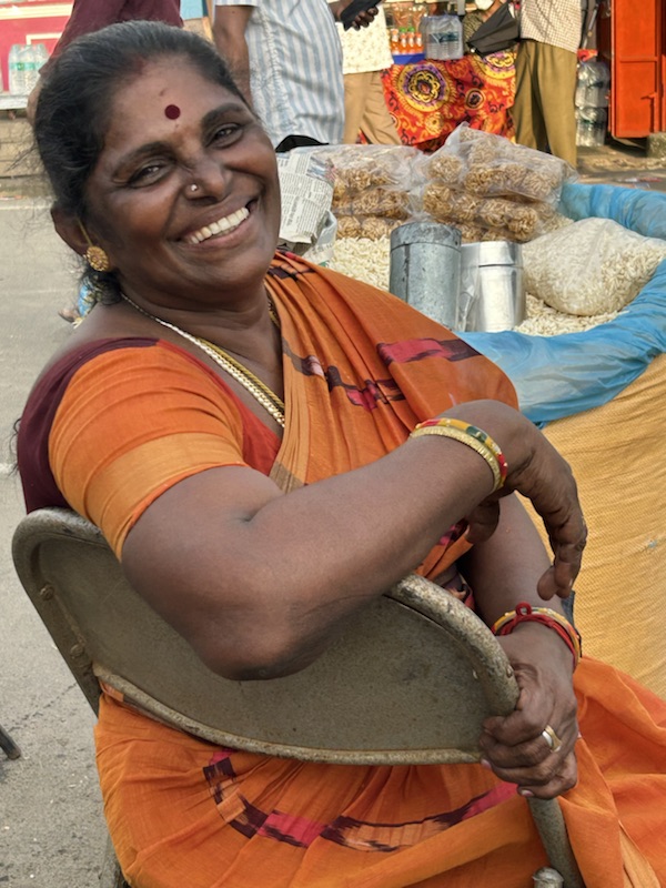 On our first day we met this woman who sold candy & cookies from a small table cart. I told her she was beautiful. That made her day! She then told all her friends what I said. She told us she had always been told she was too dark to be beautiful.