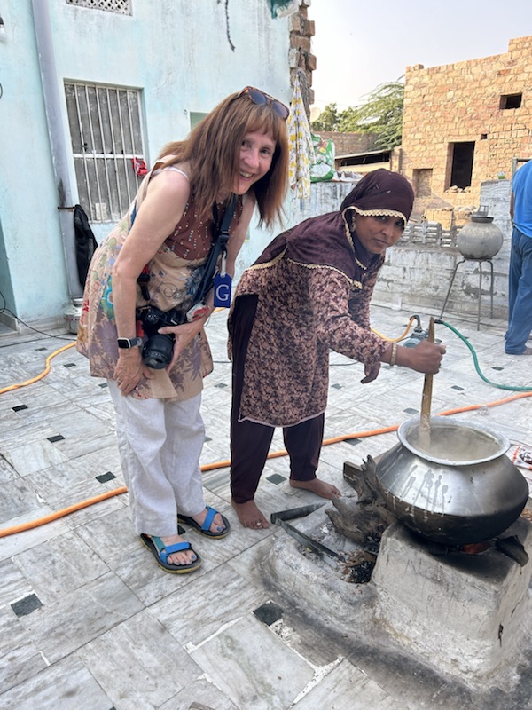 Outside the fort we walked through narrow streets to view beautifully carved homes called Havelis. The word “Haveli” means “Big Winds” because of all the windows & openings in them which provided much needed ventilation & air flow in the hot summers. These luxurious mansions were built by the richest citizens who profited the most from the Silk Road.