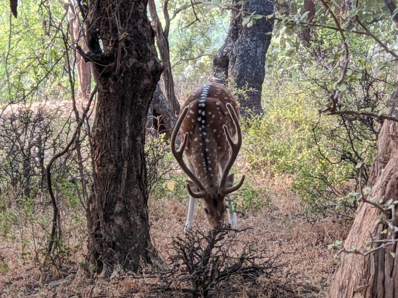 To find the tigers in the late afternoon, the guides listen for the sambar deer to make a loud barking sound they use to warn each other that a tiger was spotted. Each time we were heard this warning call, we saw a tiger.