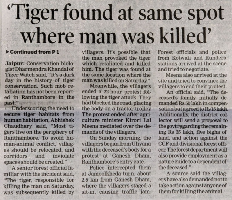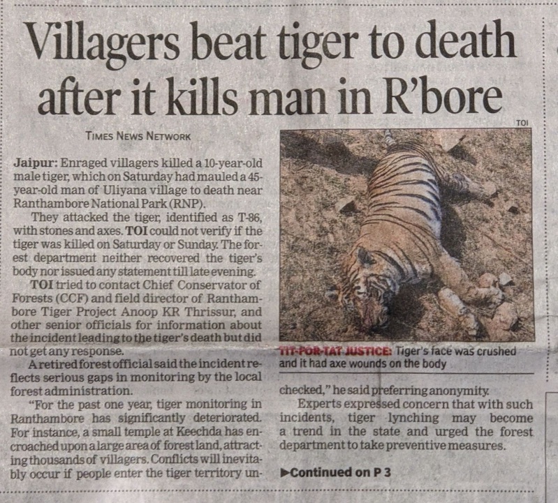 A few weeks ago, these articles were in the Times of India newspaper paper about tigers in Rathambore.