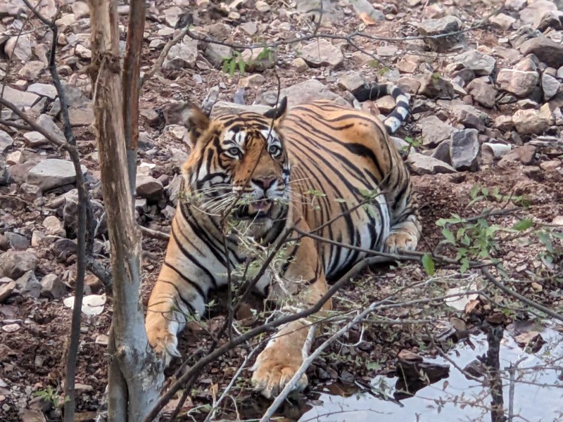 It was amazing to see this tiger drinking water & resting about 10 meters from us for a brief period before moving back into the bush.